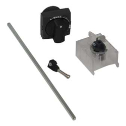 • Zubehör Verriegelung in EIN- und AUS-Stellung, Schwarzer Griff, blaues Schild, IP 54